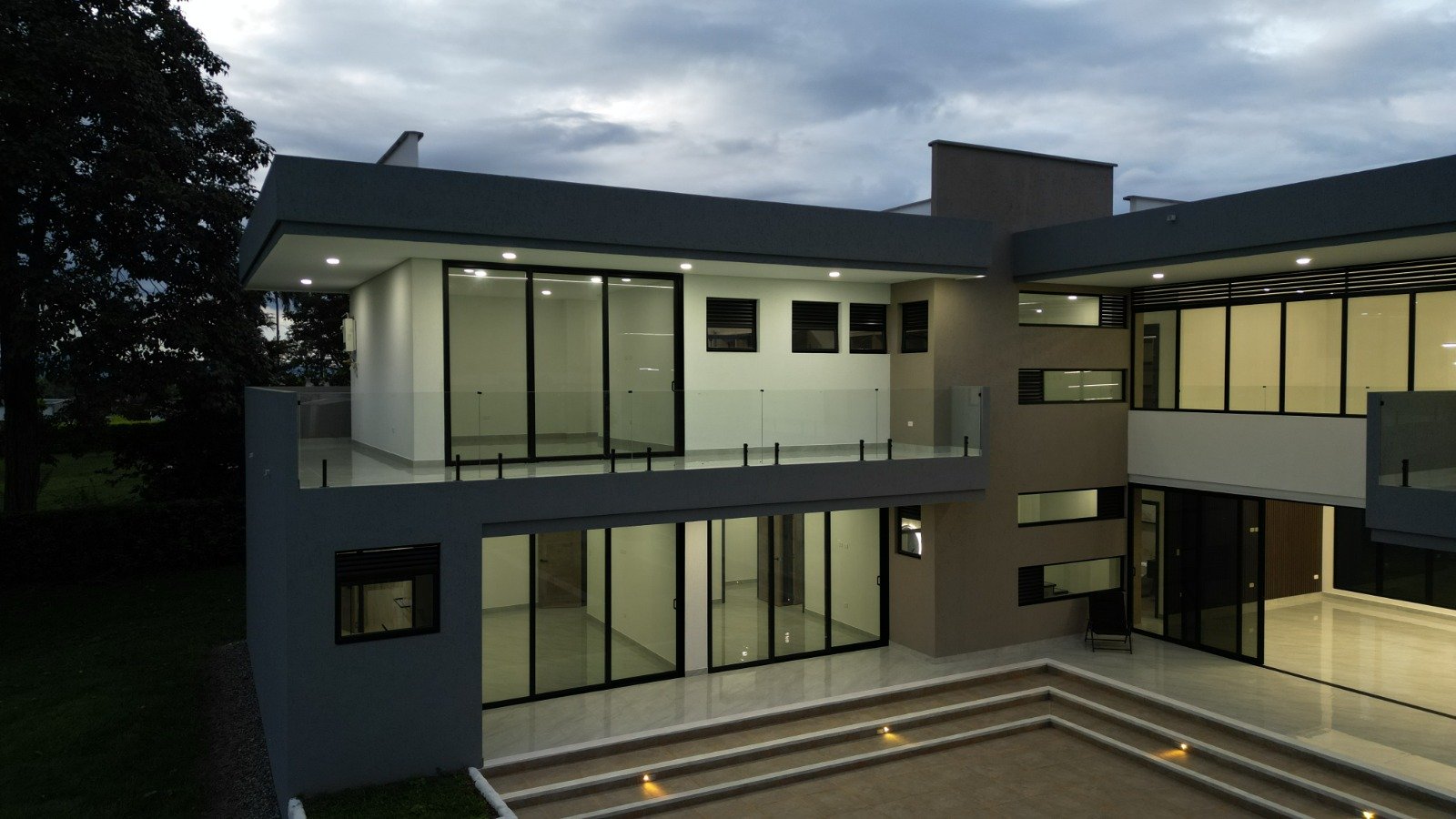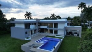 Sala doble altura, comedor, sala auxiliar, estudio, cuarto bodega (uno exterior y otro interior) 4 habitaciones sin contar la de la empleada, 7 baños (la habitación principal tiene 2 baños independientes)