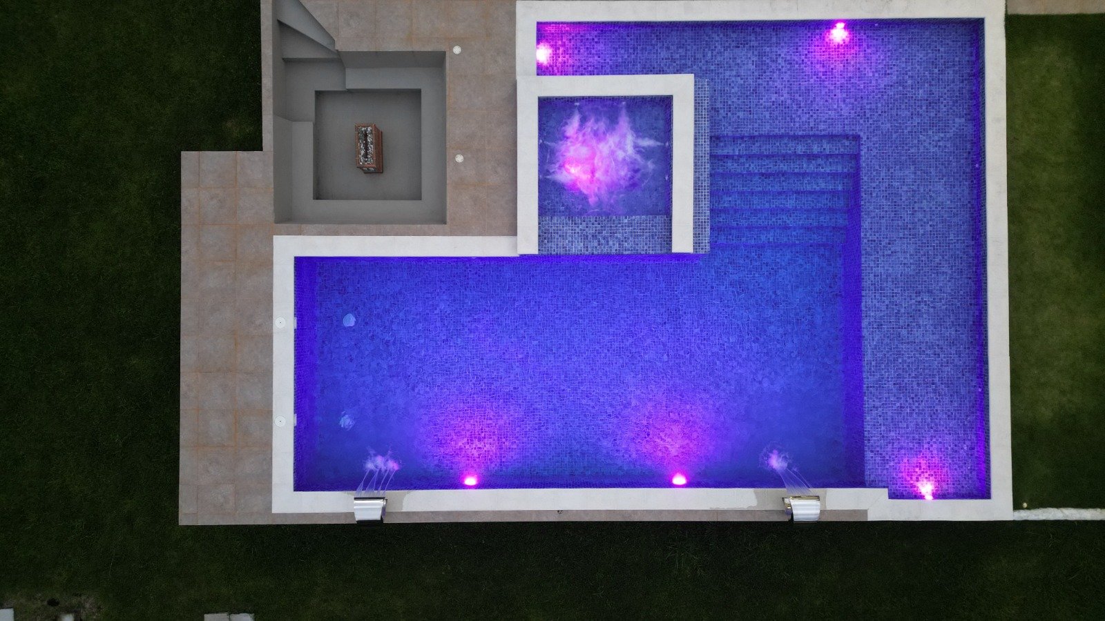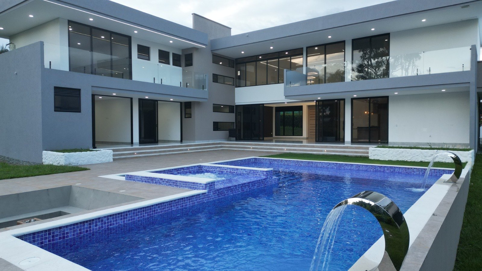 La casa tiene 750 metros cuadrados construidos repartidos en una piscina de 200 metros con su zona húmeda incluido jacuzzi y chimenea exterior, casa de 2 niveles